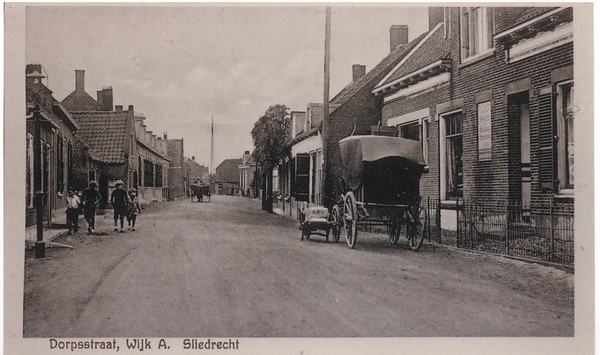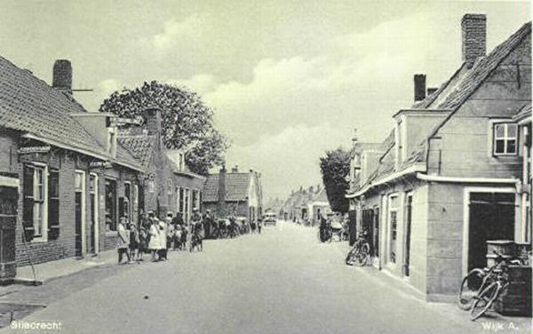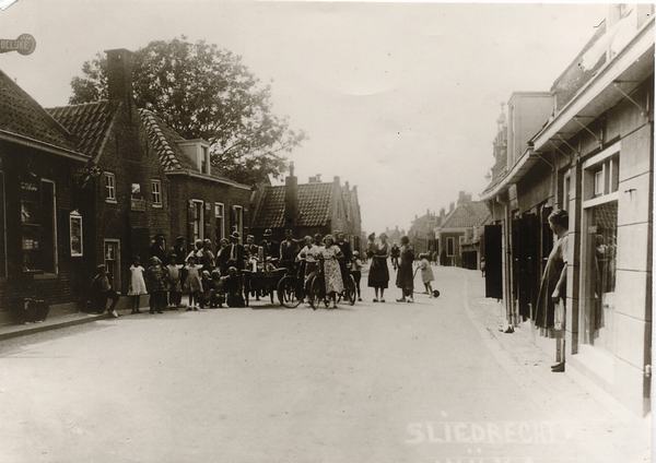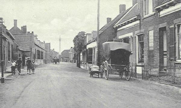 Textielwinkel van Vermaas aan rechterzijde. Aan de linkerzijde de kruidenierswinkel De Kleine Winst van Lagewaard.