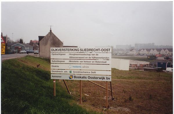 Dijkversterking nabij de watertoren. Woning op voorgrond binnendijks is de vroegere kruidenierswinkel van Jasper de Waard.