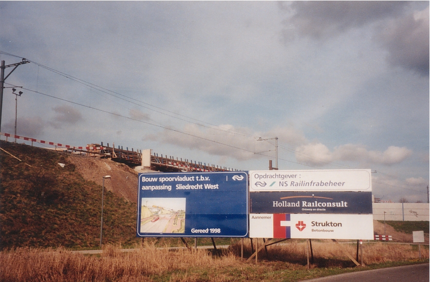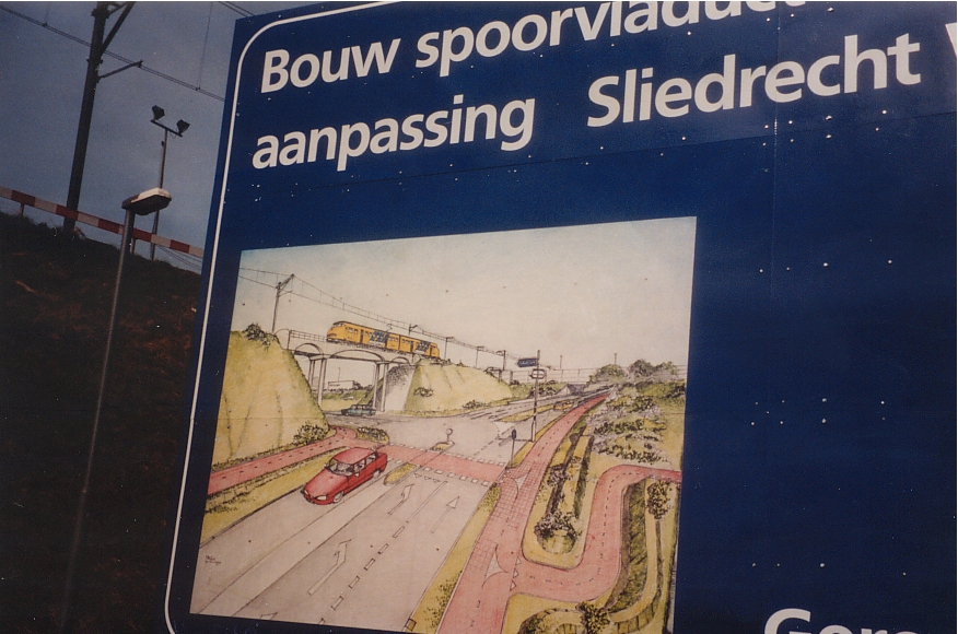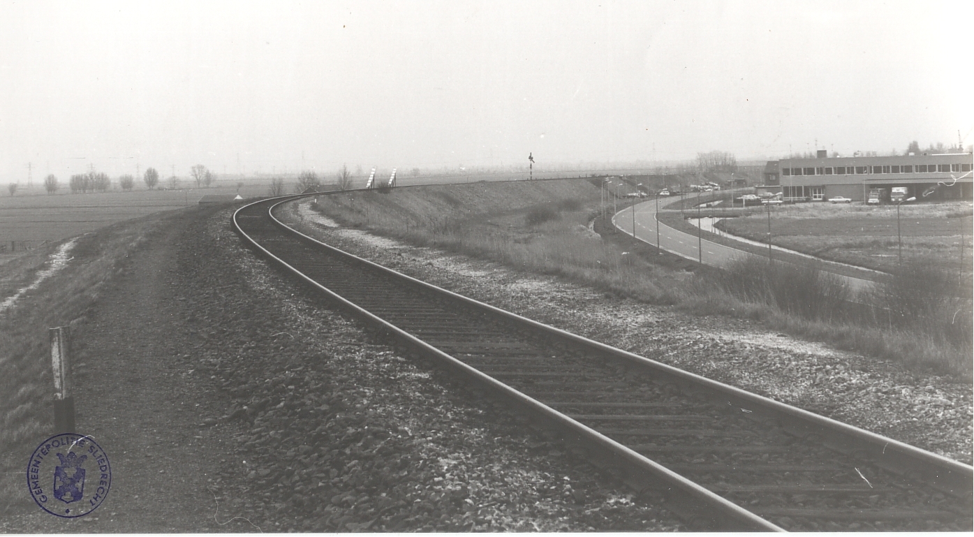 Spoorbaan langs de Parallelweg. Op de achtergrond 'Boon Sliedrecht' ter hoogte van de Marisstraat.