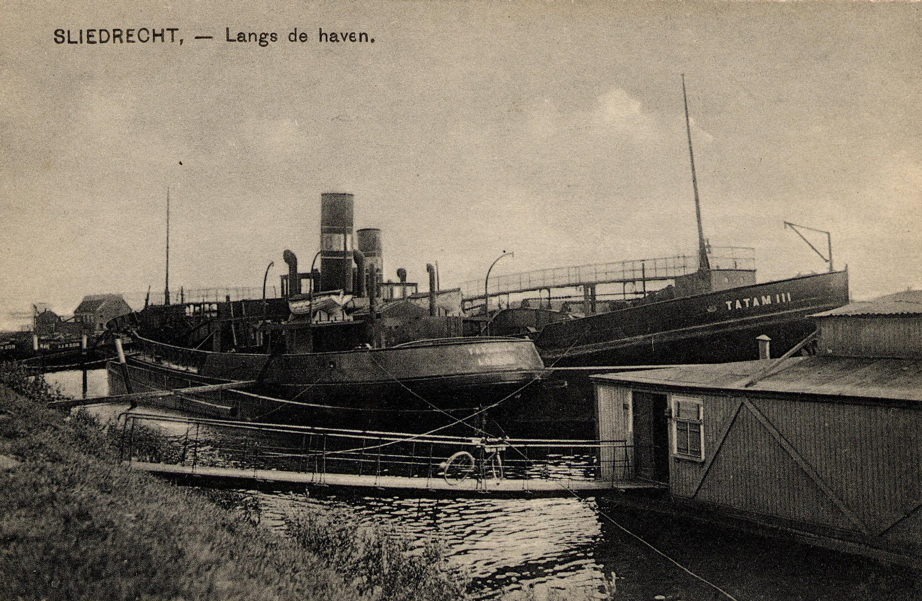 De haven van Sliedrecht met sleepboot en het oude zwembad