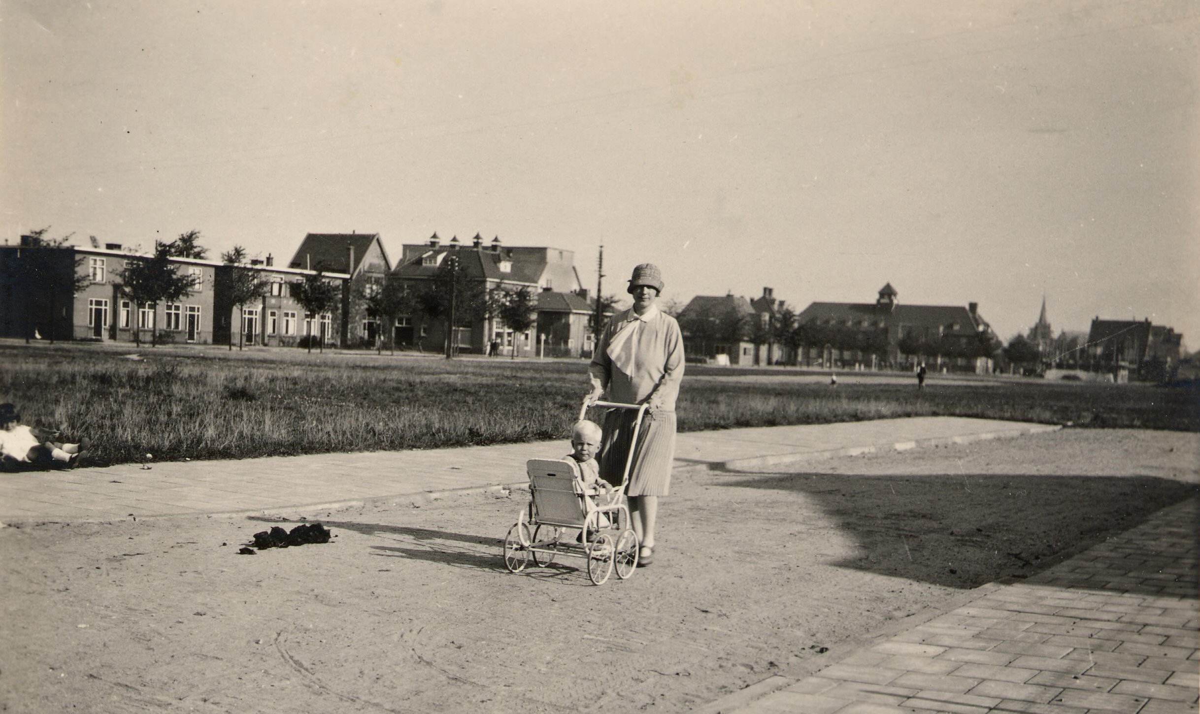 Aan de wandel in een nog onbebouwd deel van de Merwestraat
