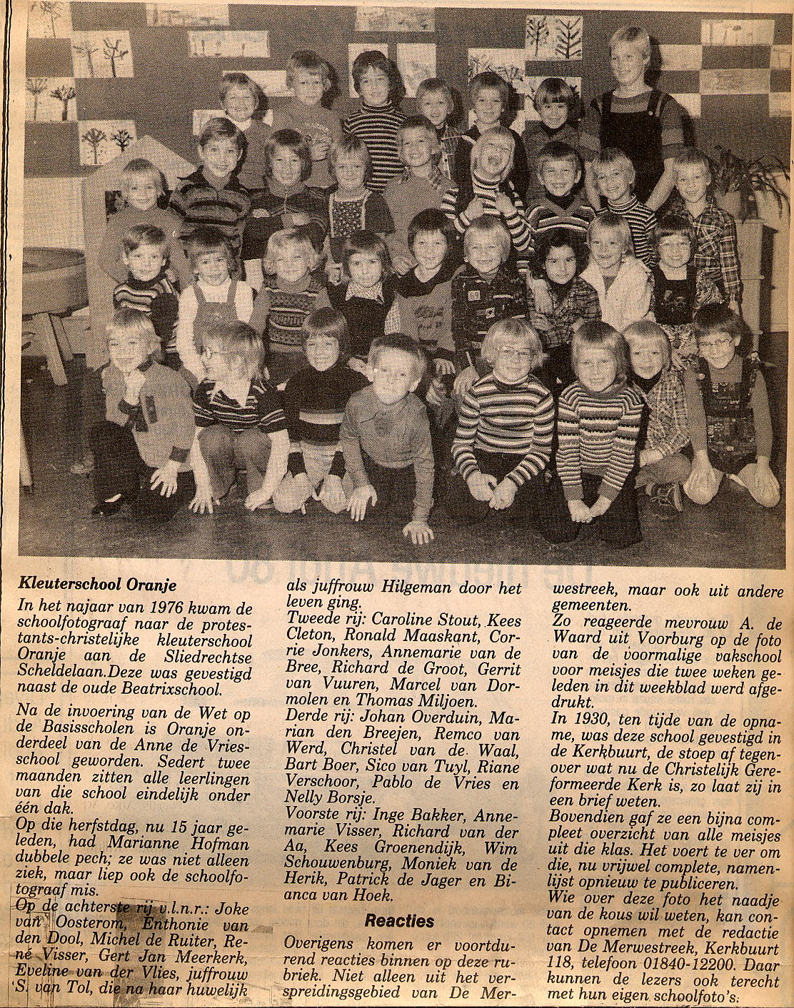 Schoolfoto kleuterschool Oranje