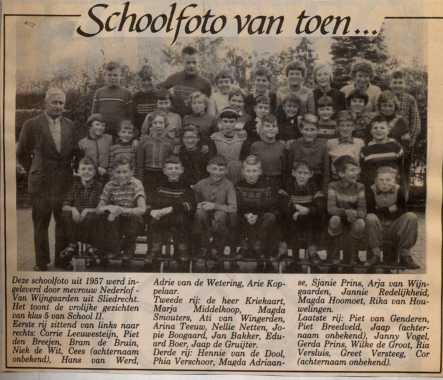 Schoolfoto school 2 uit 1957 met de heer Buijs