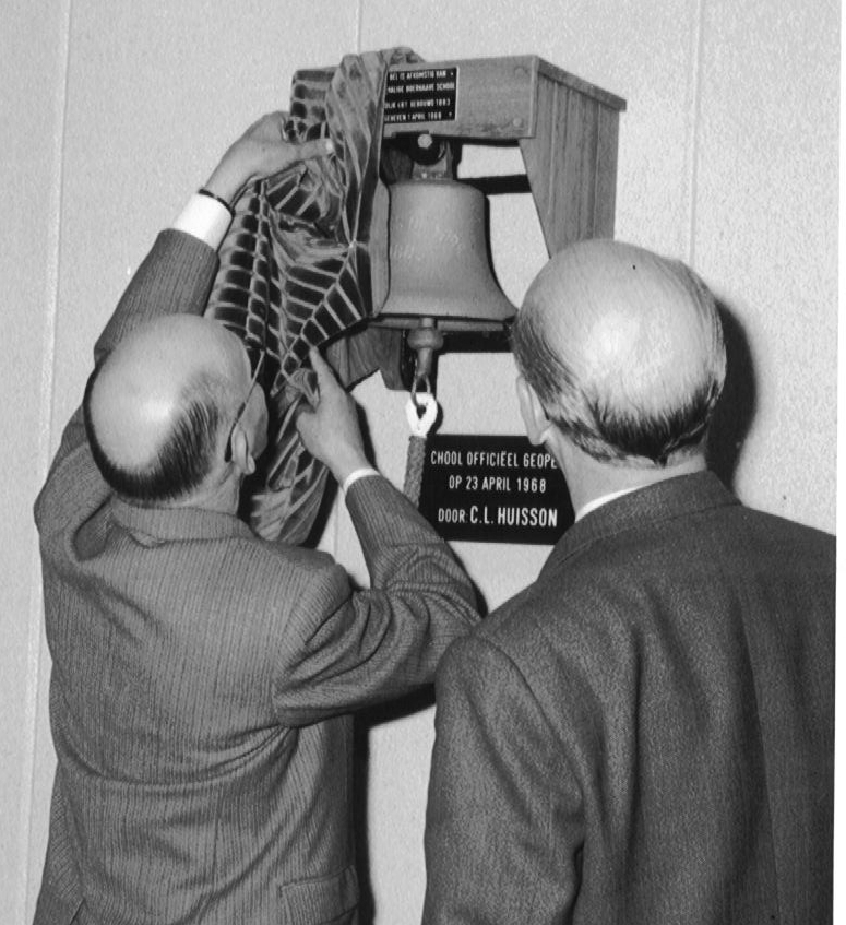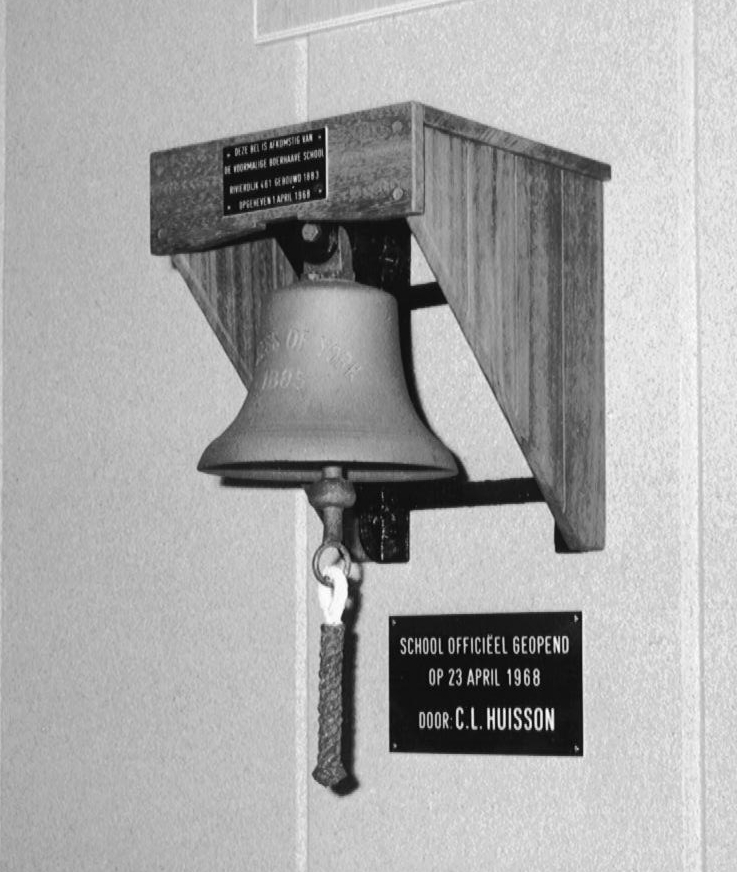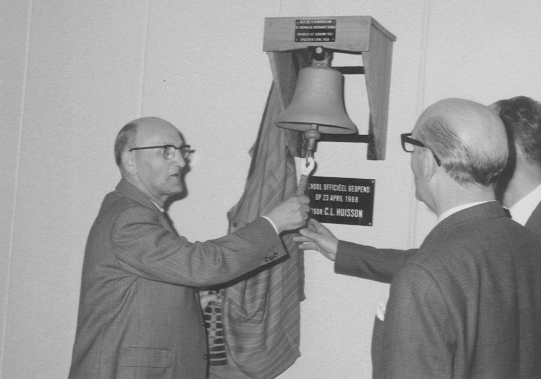 De oude schoolbel van school 1 krijgt een plaats in de hal van de Boerhaaveschool 1968.