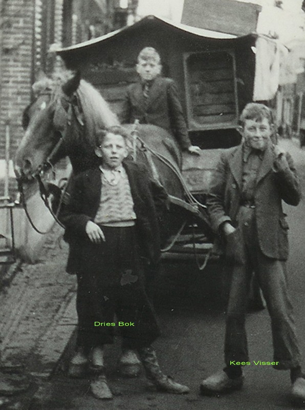 Groentekar Korevaar met Kees Visser en Dries Bok