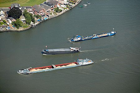 Schepen op de Merwede nabij de spoorbrug te Baanhoel