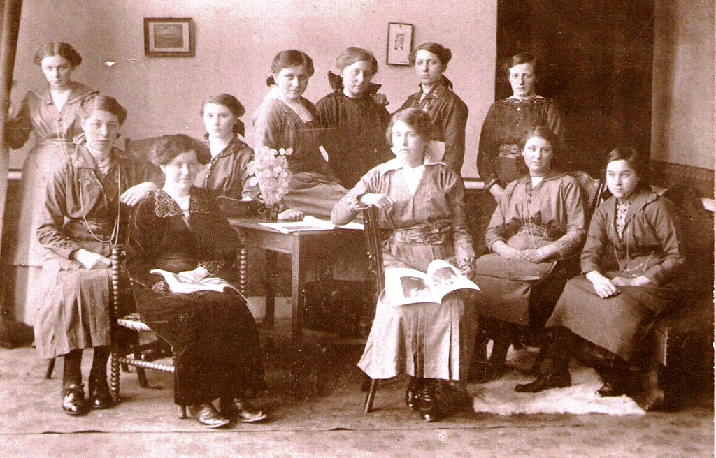 Naaisterles, links zittend Jannigje Cleton, 4e van links staande Annigje Cleton.