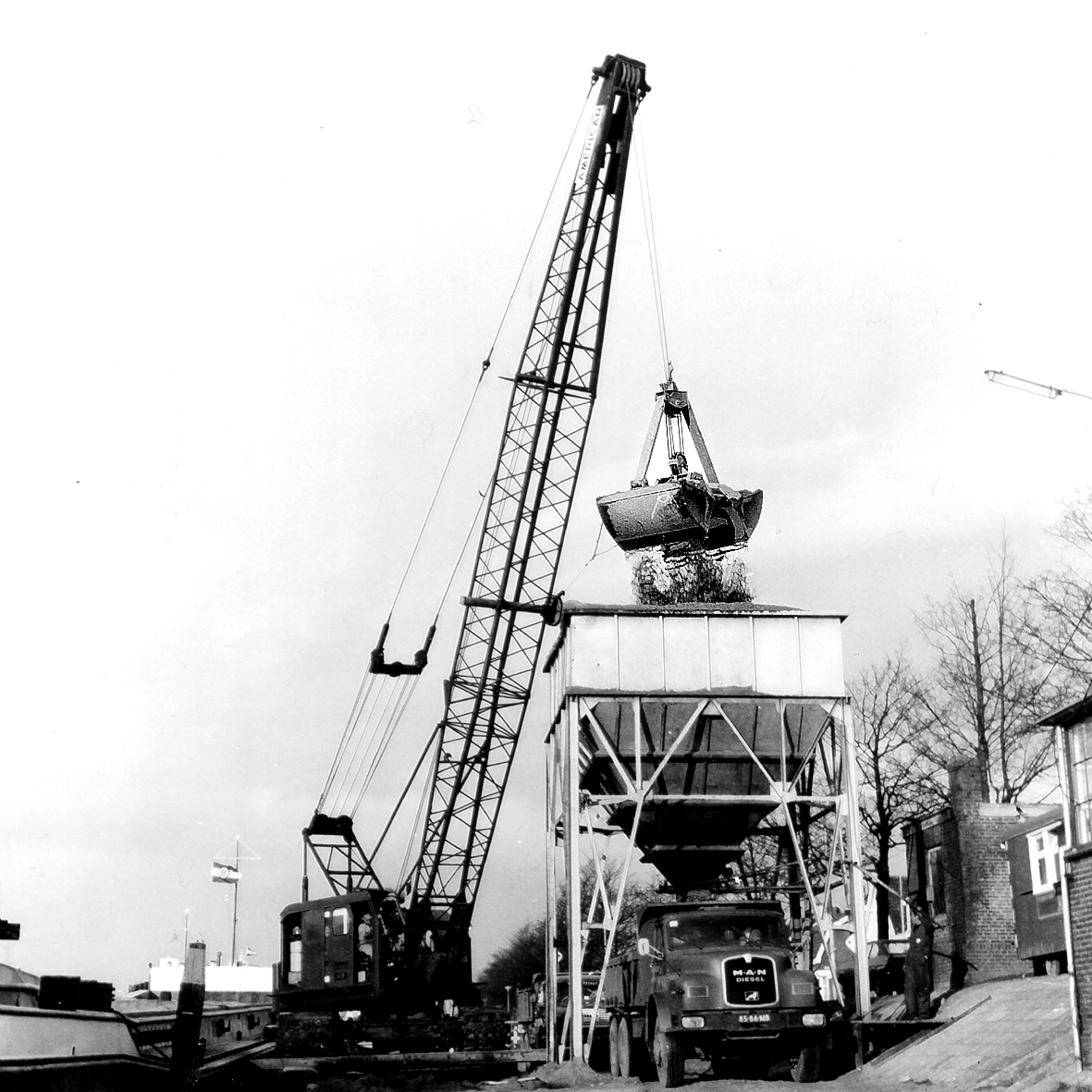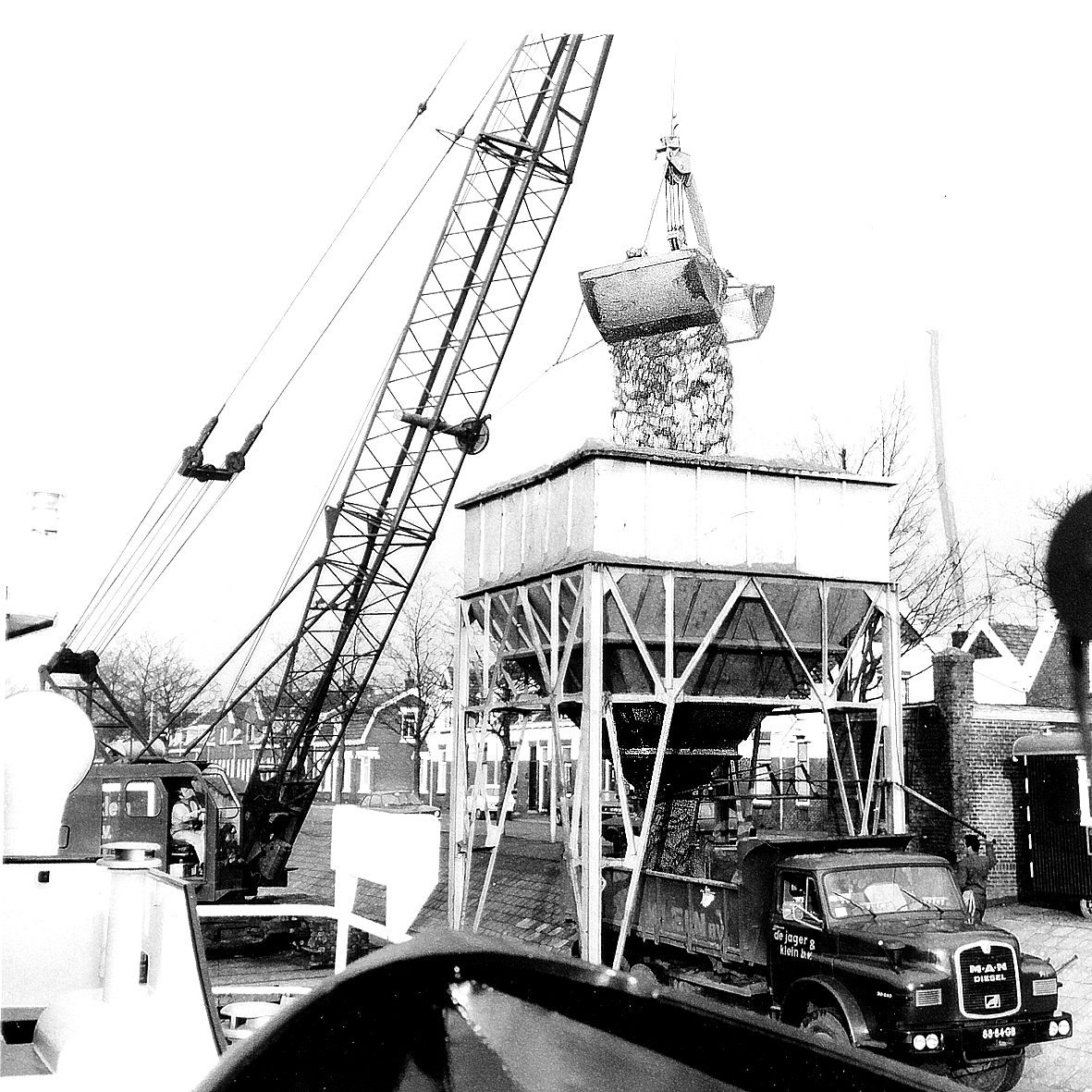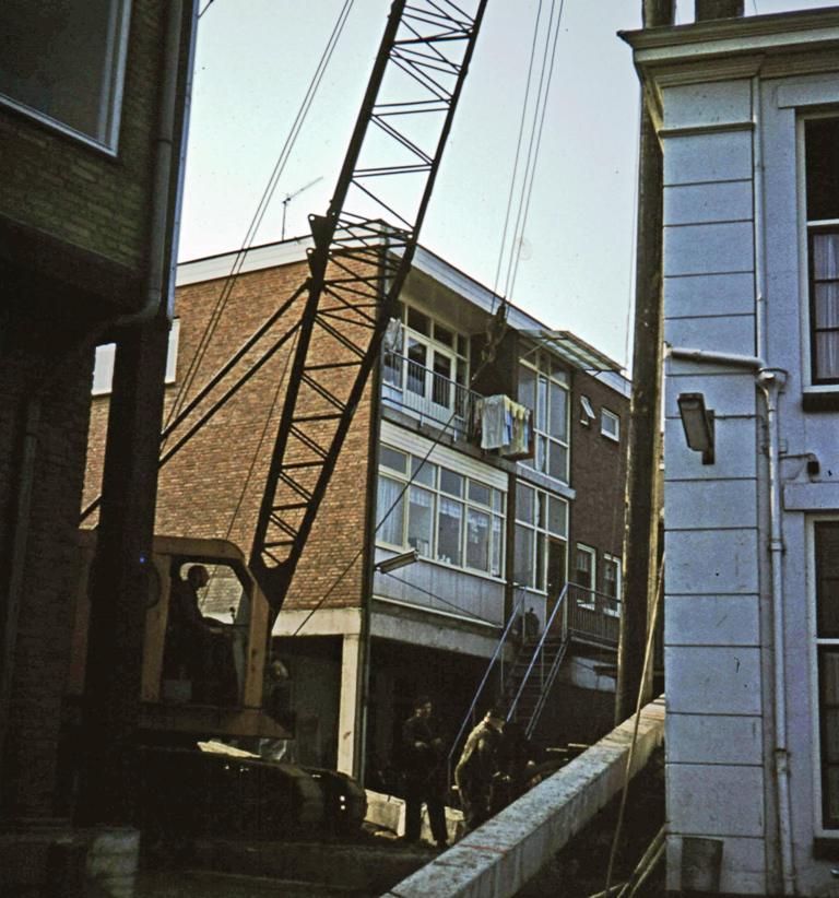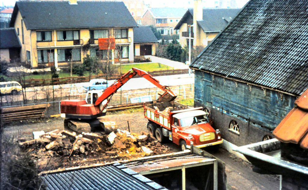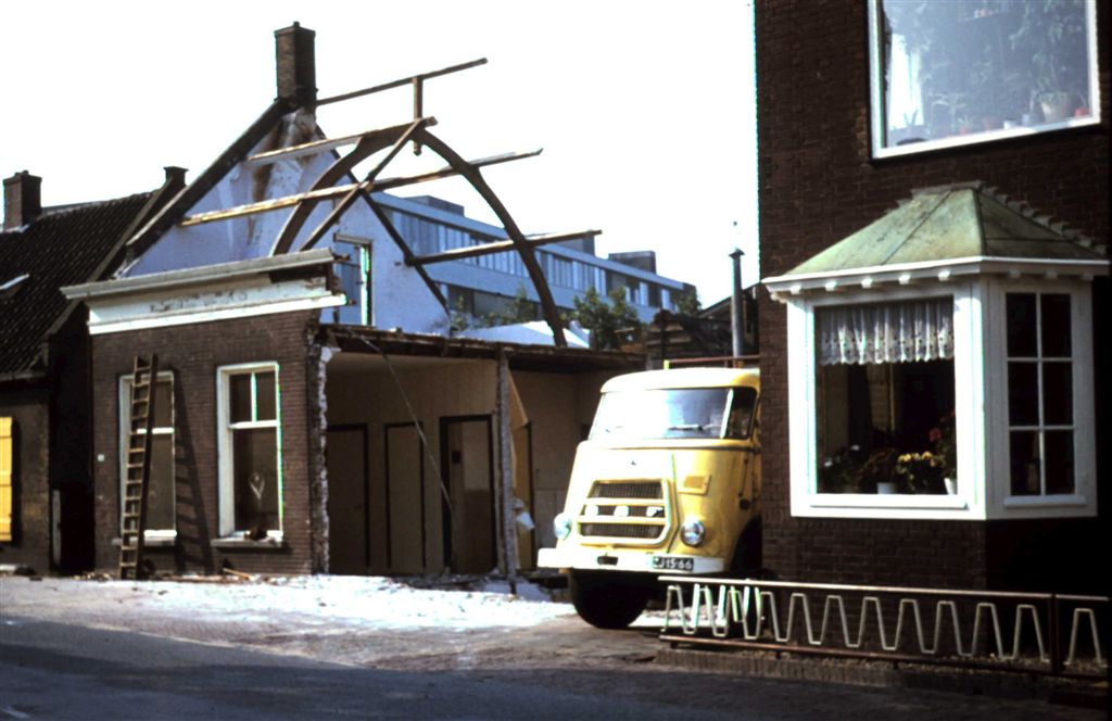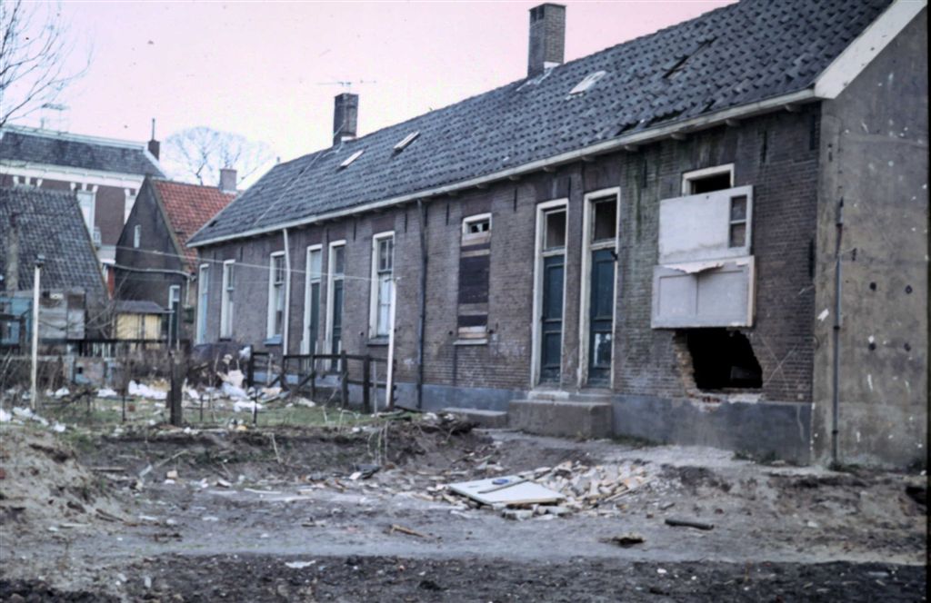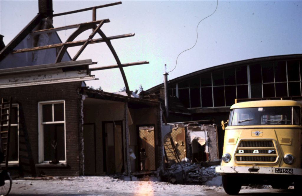 Sloop woningen in verband met de bouw van Waerthove. Op achtergrond de TP garagehal.