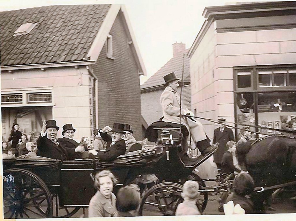 Optocht op de dijk bij drogist Nederveen in Kerkbuurt-West.