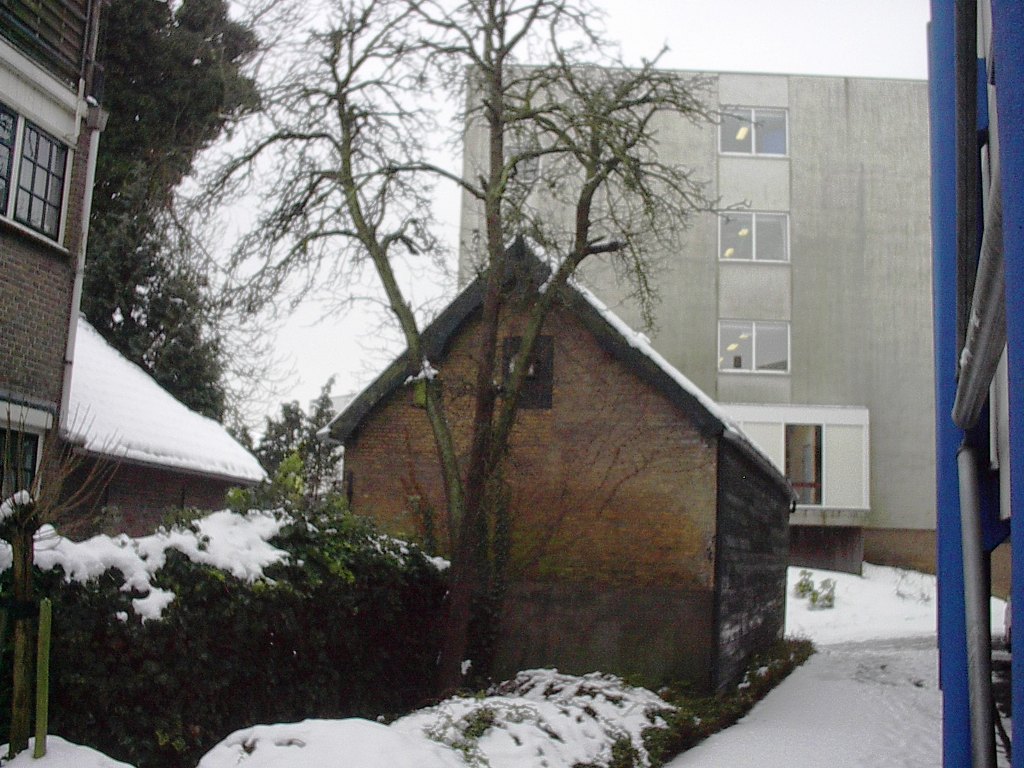 Gebouw nabij Waerthove, het ziekenhuis en Van Bekkum naaimachinewinkel.