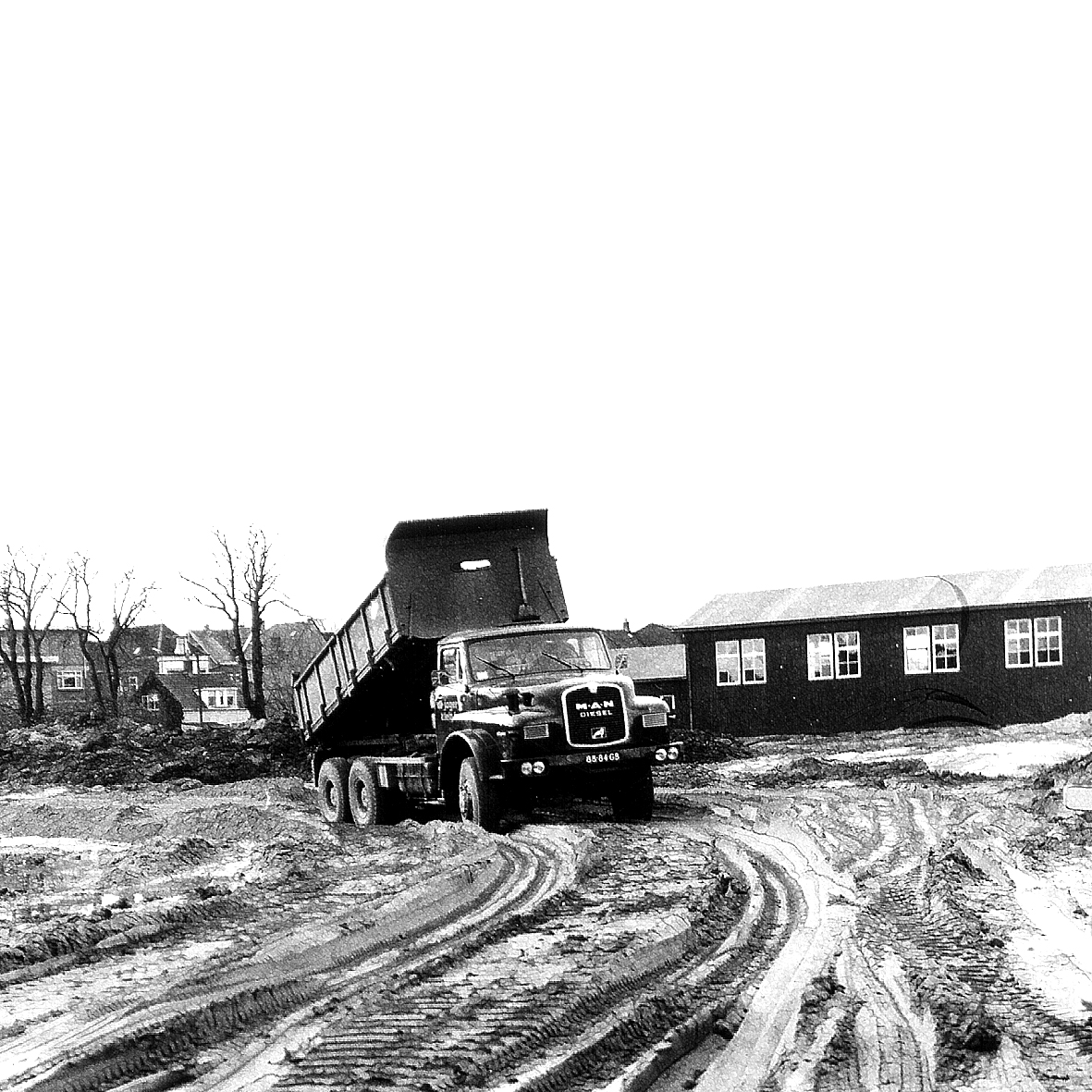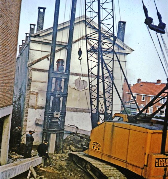 Bouwwerkzaamheden in de Kerkbuurt nabij de vroegere ambachtsschool.