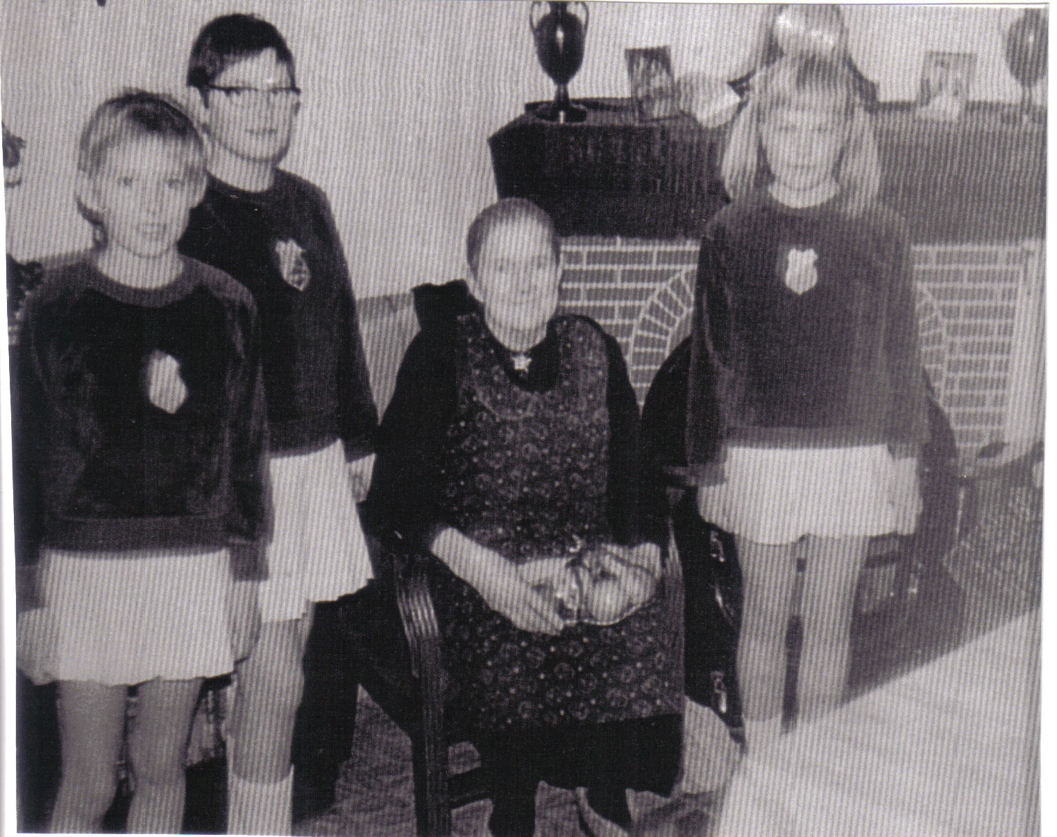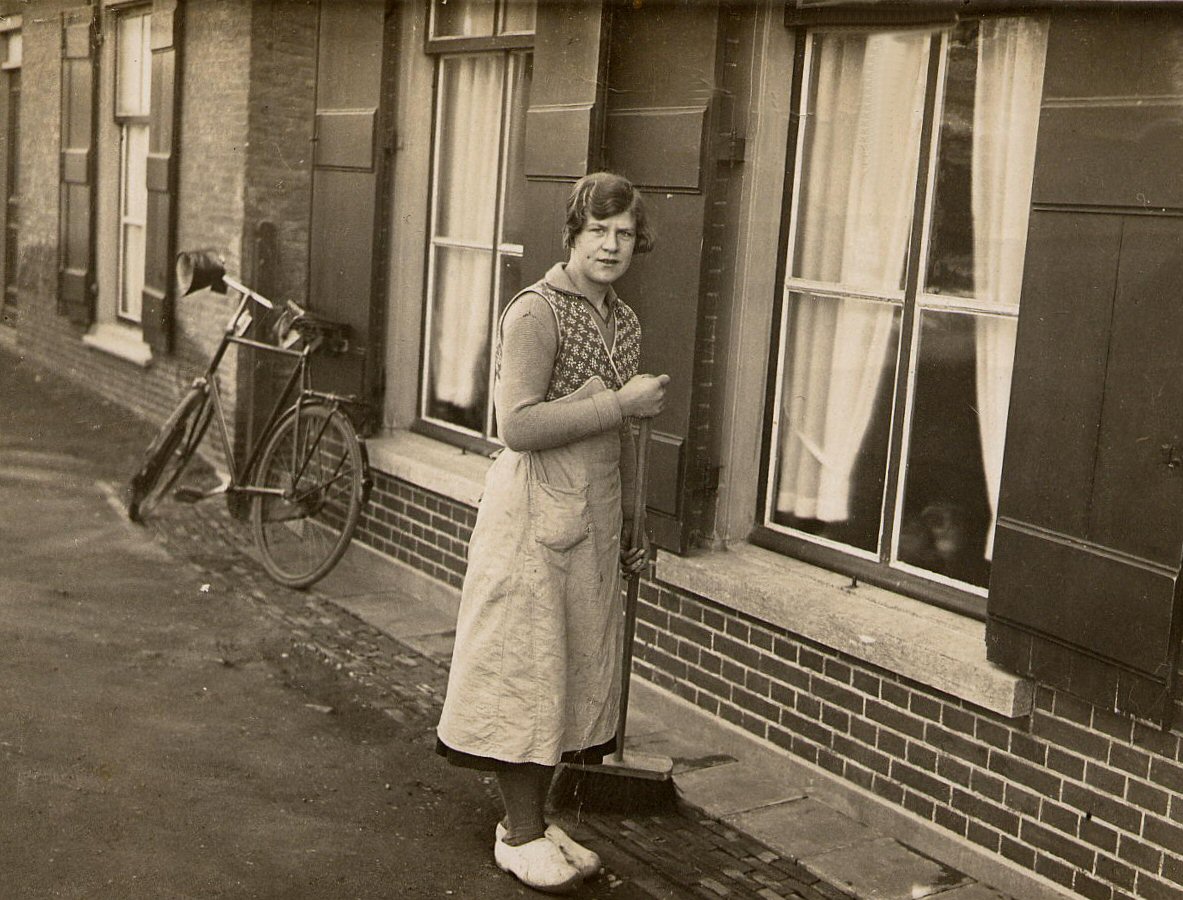 S.S.S.-meisjes met Marie Visscher - van Noordenne (1883-1969).De locatie is de huiskamer van haar tweekamerwoning, een onderhuis onder een voormalige timmerschuur op de huidige locatie van Tims Zonwering BV aan de Molendijk 69 te Sliedrecht