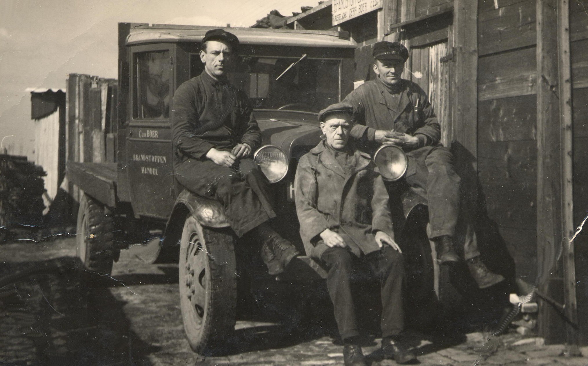 Piet de Ronde, Krijn Deventer (De Leugenaer) en Riens Boer met een lading kolen