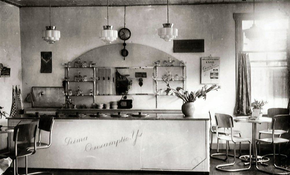 Cafetaria 't Zwaantje in de Kerkbuurt op de plaats waar later Sjeun gebouwd werd. ...