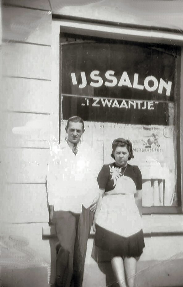 IJssalon 't Zwaantje in de Kerkbuurt met Arie van der Zwaan en zijn vrouw.