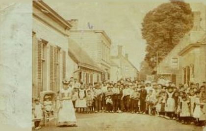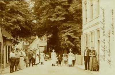 Pastorie nabij Oosterbrug en daarachter de plaats waar later grossier Van der Giessen was en weer later de bouwvereniging De Waert.