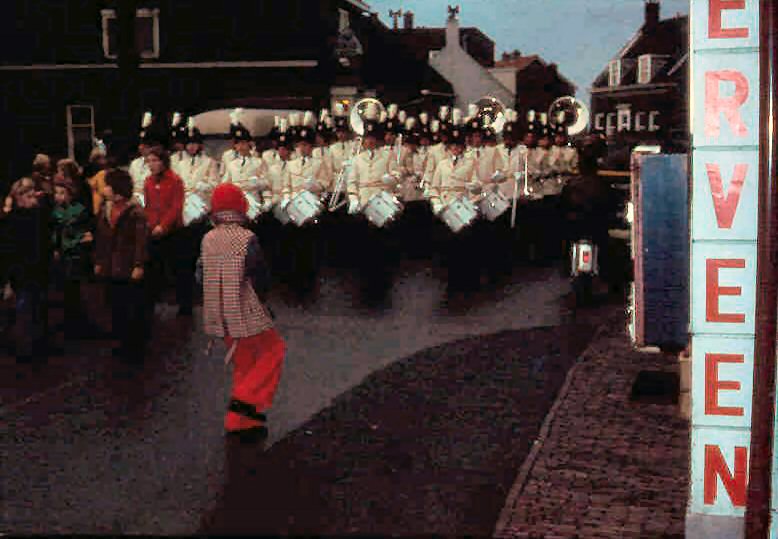 Muziekkorps Wilhelmus ter hoogte van drogist Nederveen in de Kerkbuurt-West.