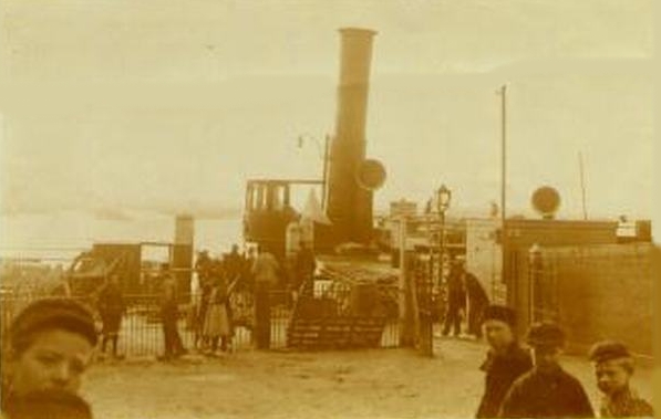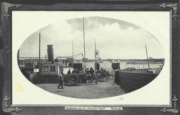 Middenveer aanlegplaats Fop Smitboten. De 'Kruger' of 'Steijn'nadert.