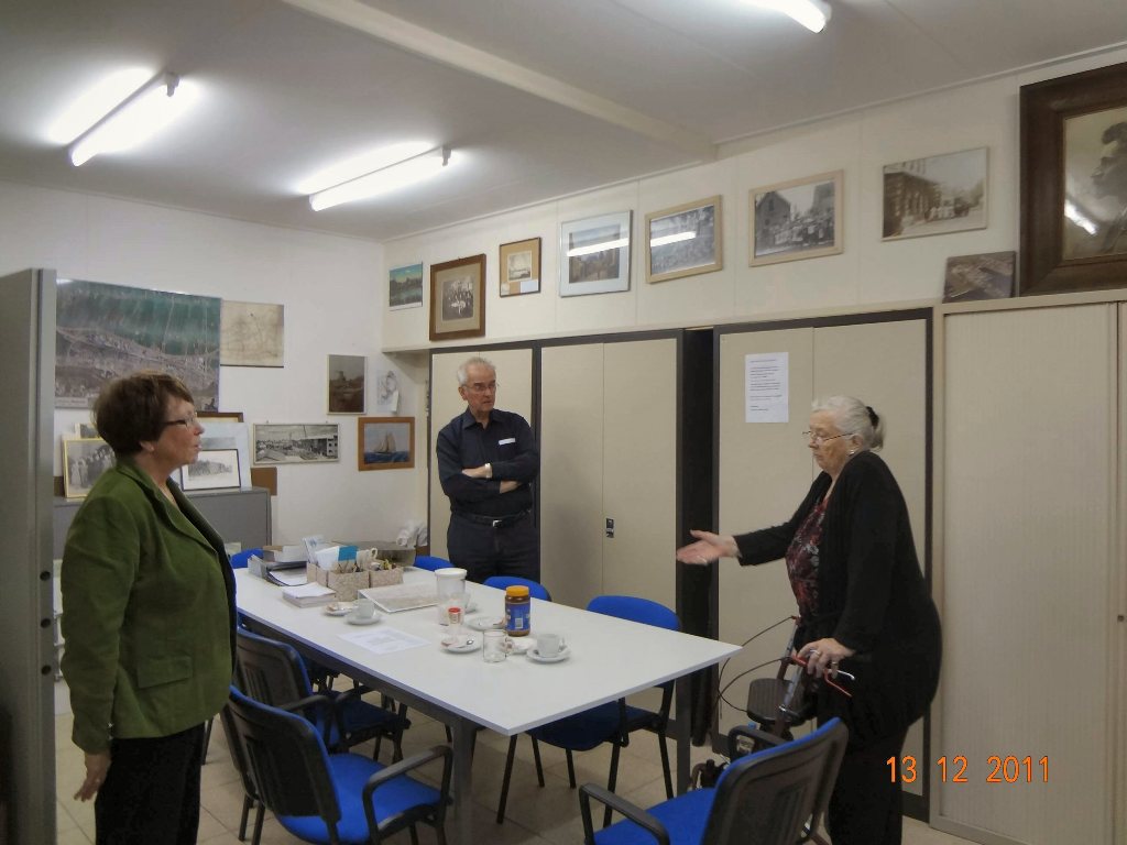 Bezoek van Truus van de Wetering-Bernhart aan het Onderhuys van de Historische Vereniging Sliedrecht.