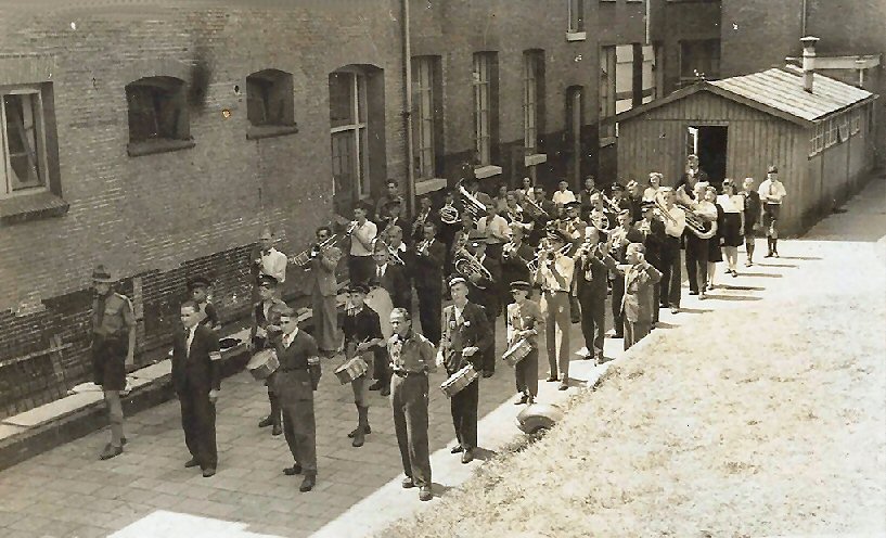 Muziekkorps Crescendo in quarantaine in Gorinchem na het vermoeden van een besmettelijke ziekte opgelopen in Werkendam net na de 2e wereldoorlog.