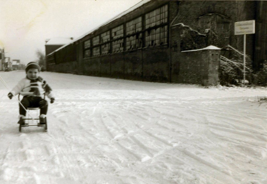 Richard Gelderblom op de slee aan het eind van de Industrieweg.