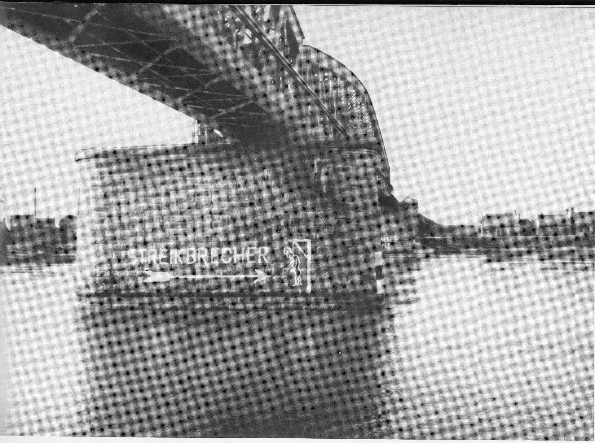 Protest van Nederlandse schippers tegen Duitse collega's die het protest om betere werktijden en betalingen saboteerden.