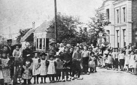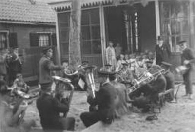 Muziekkorps bij bewaarschool aan de Tolsteeg