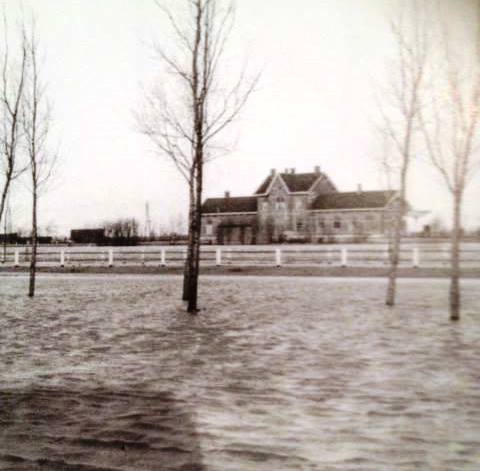 Watersnood 1953 bij het station.