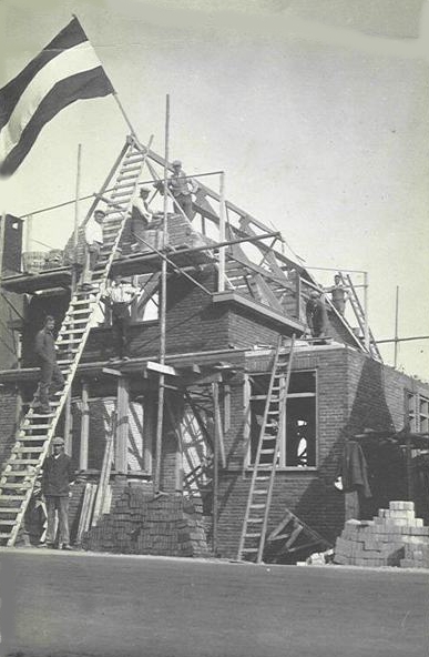 Bouw van de woning Van den Dool, timmerman. Omgeving Nederveen schildersbedrijf.
