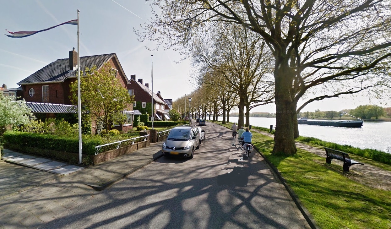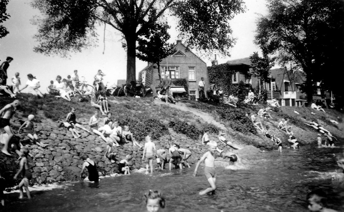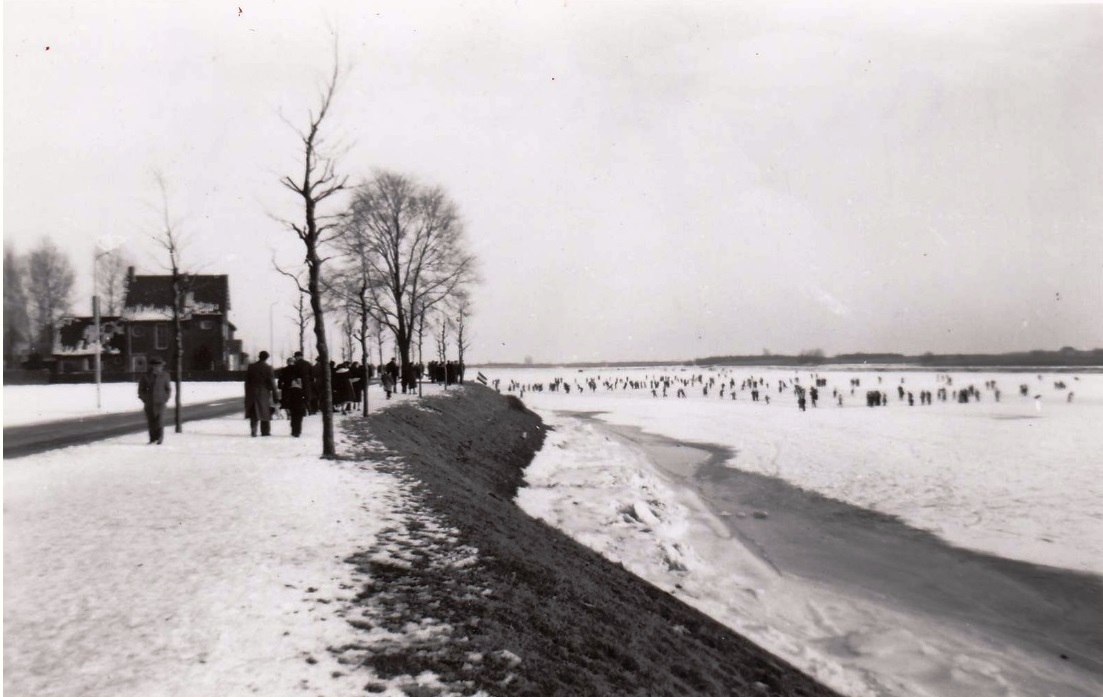 Singel in wintertijd ijsvermaak op bevroren Merwede