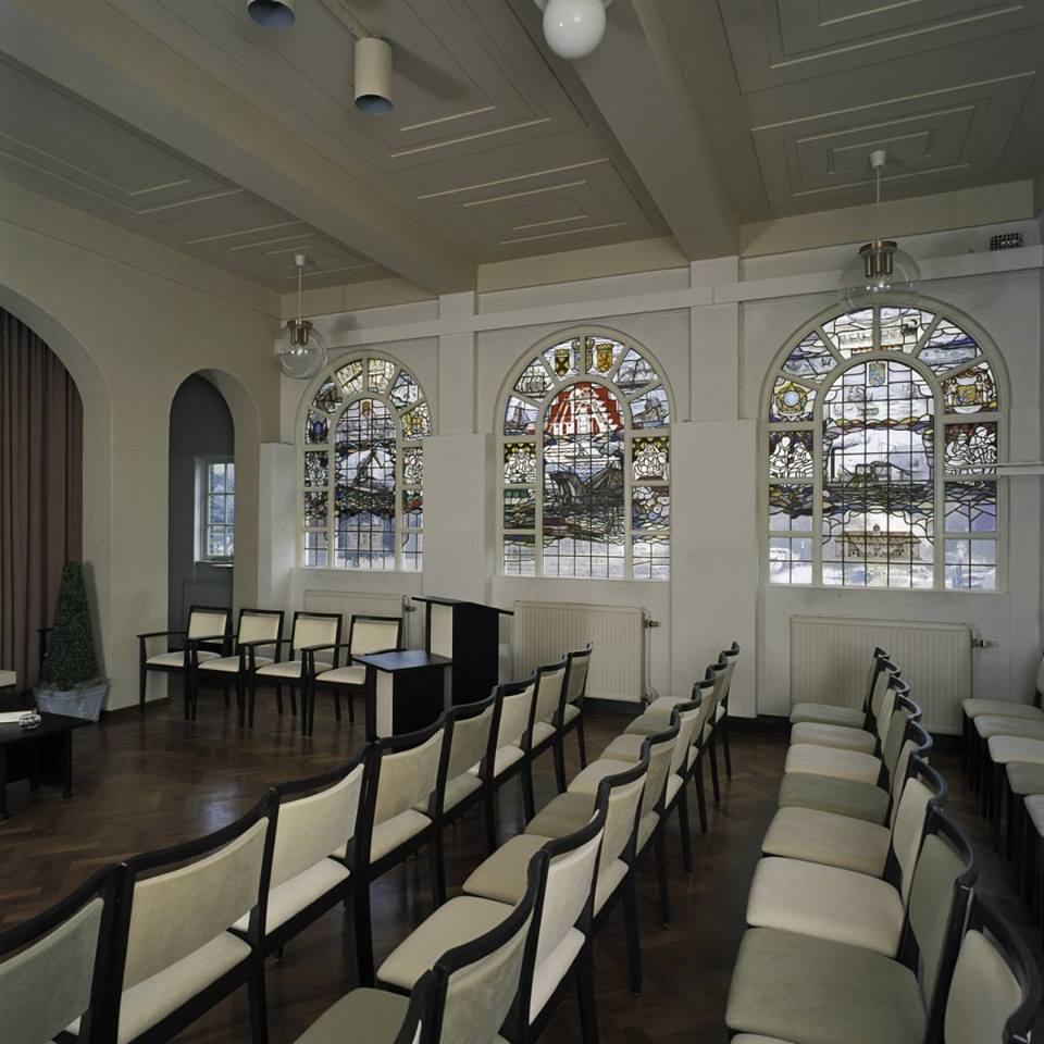 Trouwzaal Sliedrecht in gemeentehuis met glas-in-lood-ramen