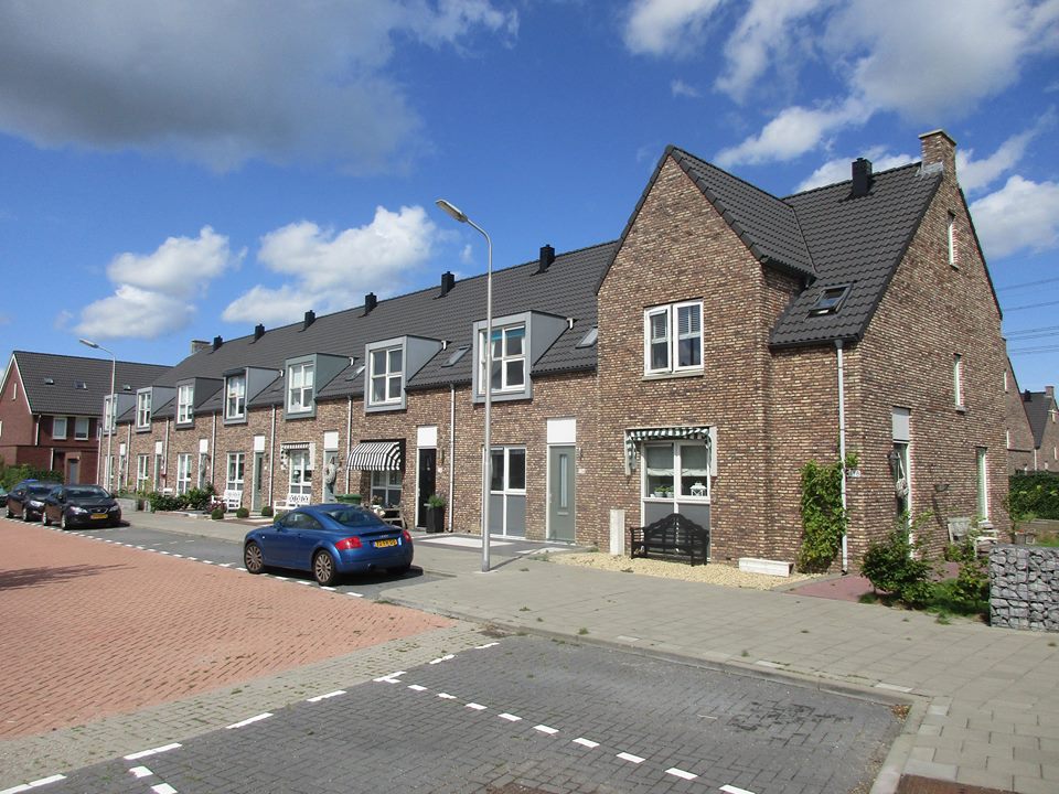 Rijtje woningen te Baanhoek omgeving spoorbrug