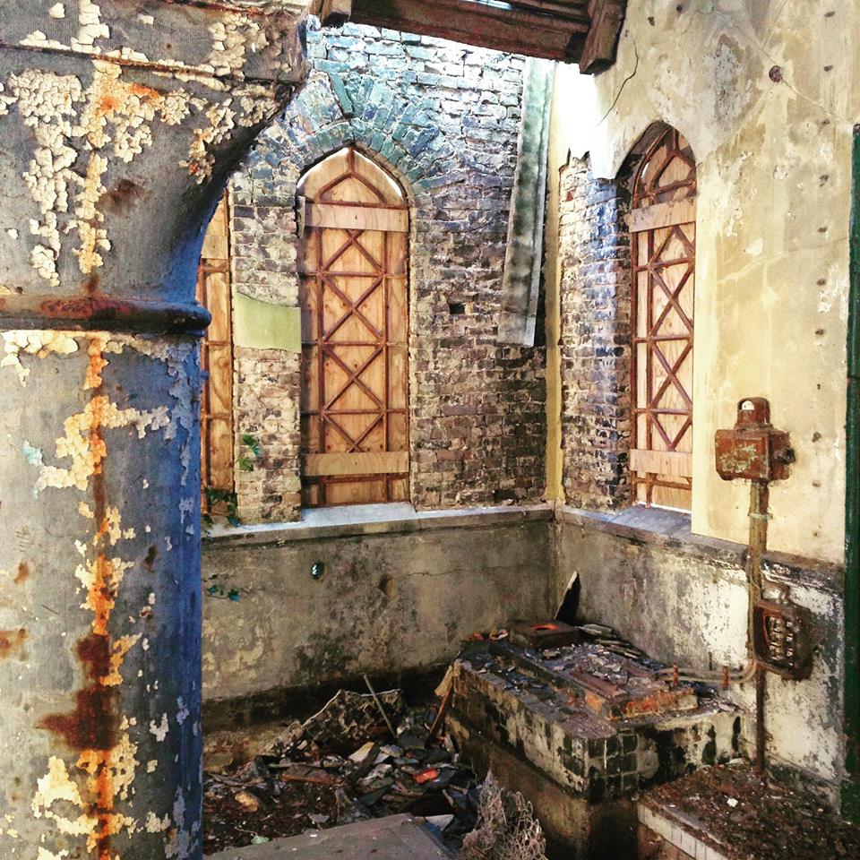 Synagoge. Een puinhoop in de oude synagoge.