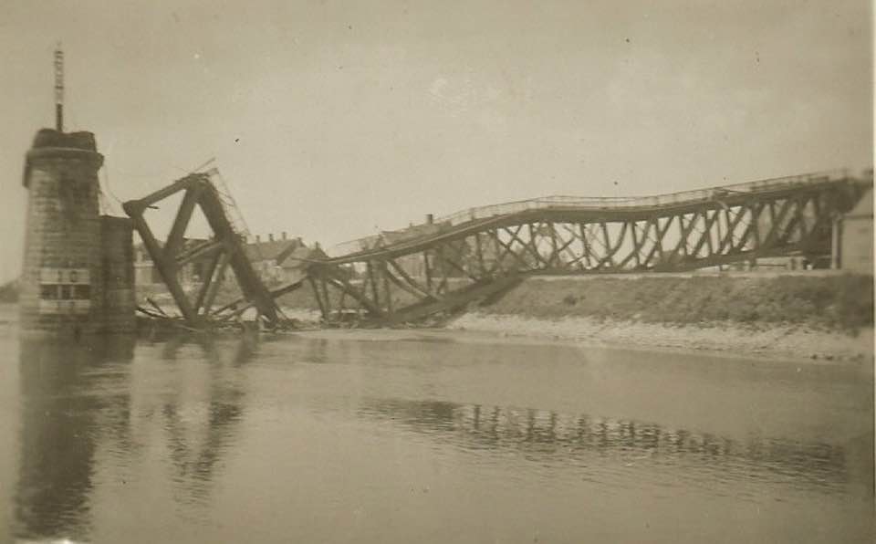 Ingestorte spoorbrug tijdens Wereldoorlog 2