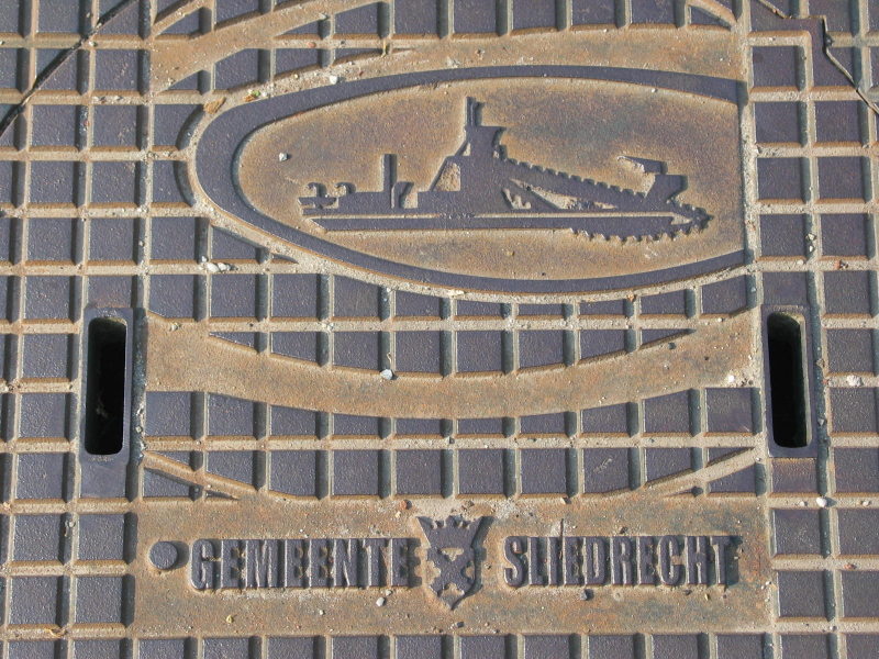 Putdekselmet baggermotief. Ontwerp Ad de Jong.