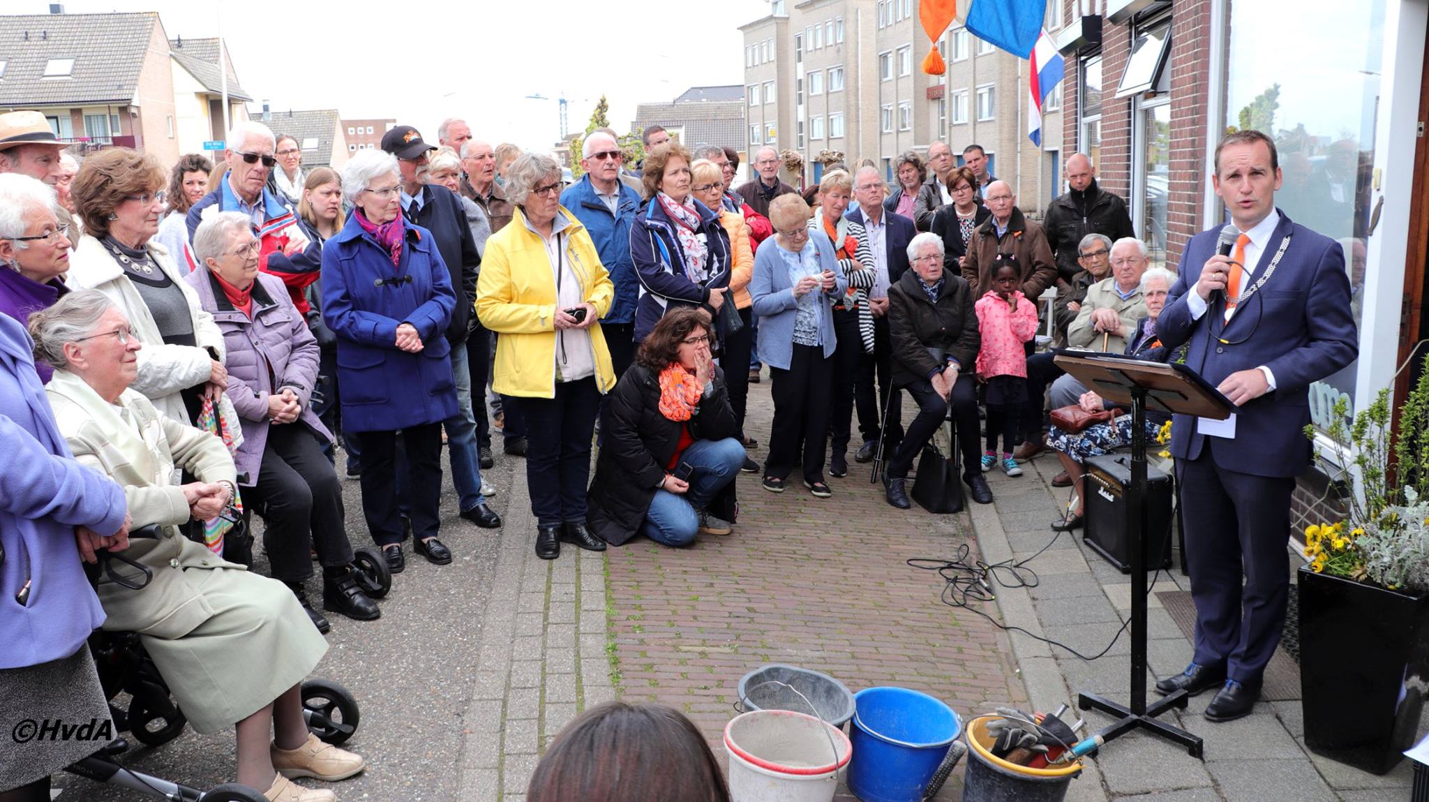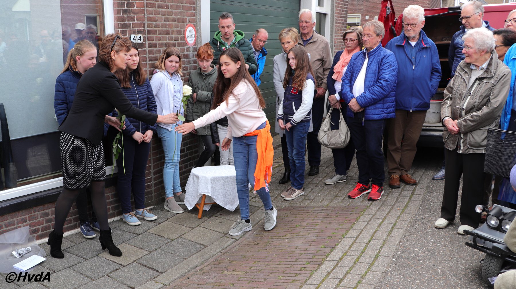 Plaatsen van een struikelsteen te Sliedrecht. Foto Hans van der Aa