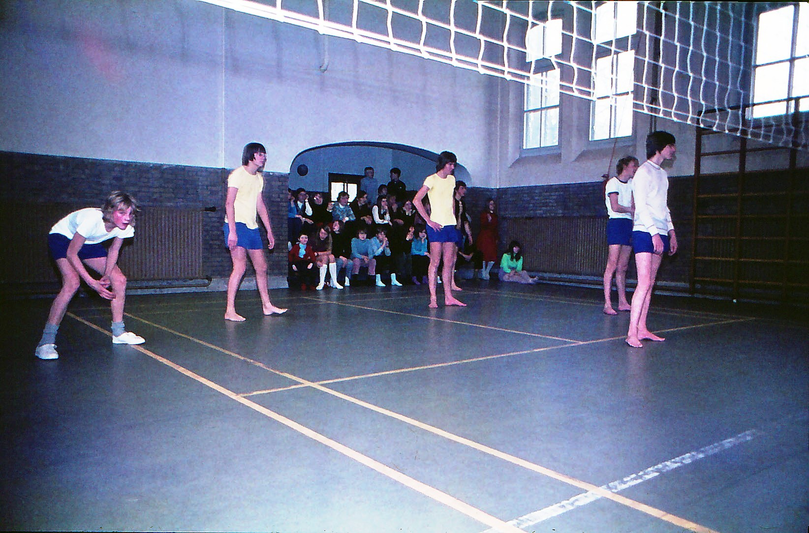 Personeel en leerlingen wedstrijd in sportzaal De Gantel.