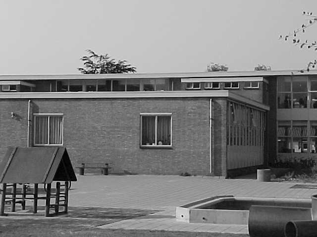 Overzicht op de vroegere school 1 gezien vanaf de dijk.