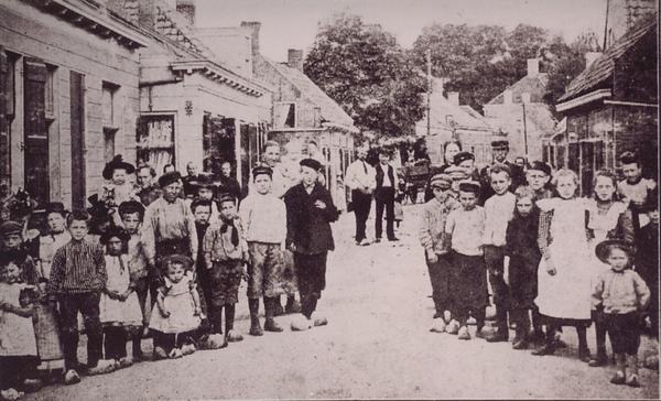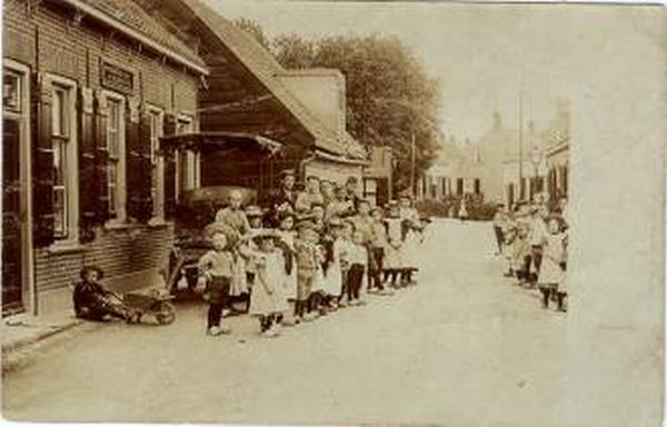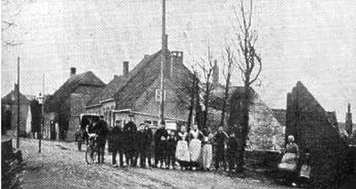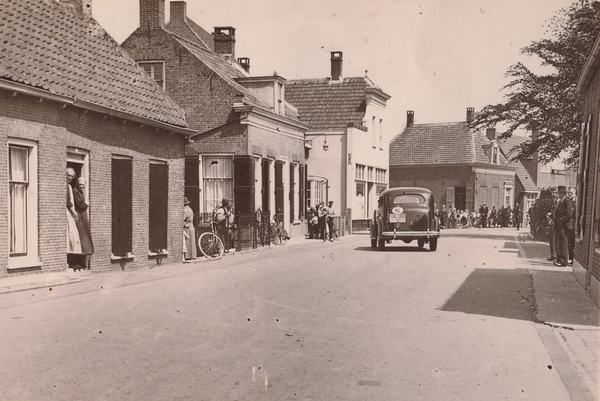 Groepsfoto ter hoogte van de vroegere Prins Bernhardstraat, nabij wijnhandel Boer.