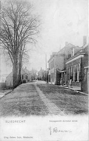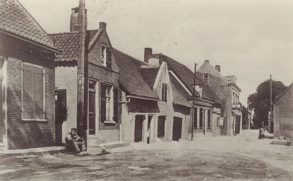 Stoep ten westen van de Engel, een vroegere herberg. Eerste huisje links Wijk D 101, fam. Van Tilburg. Woning daar achter bewoond door oud-wethouder B. Korporaal. Aan de overzijde woonde de vader van Bas Korporaal. Daar achter woonde fam. Dekker.