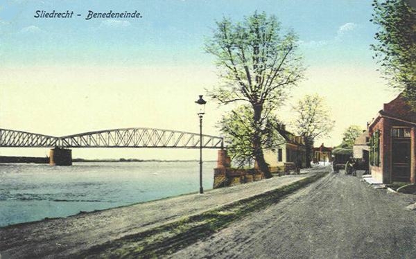 Baanhoek bij spoorbrug gezien vanaf de Merwede