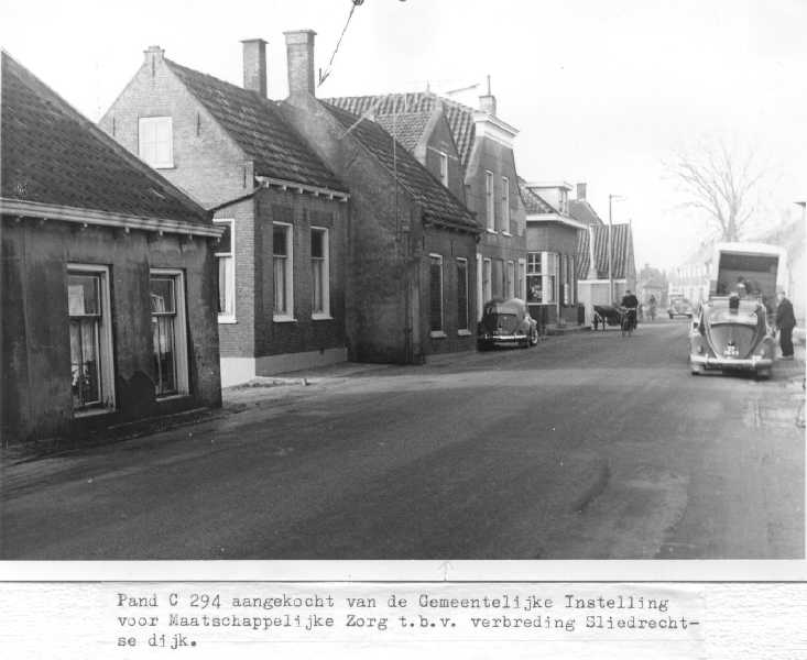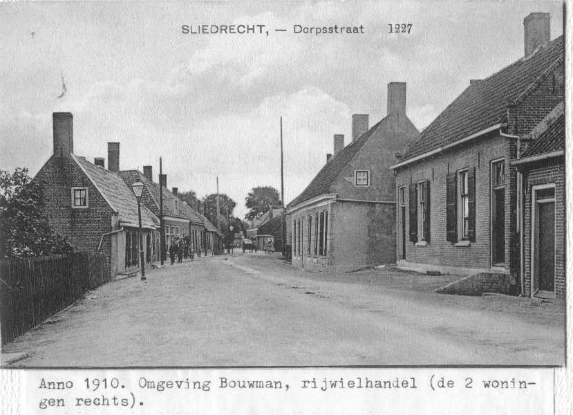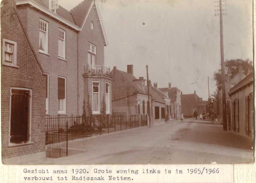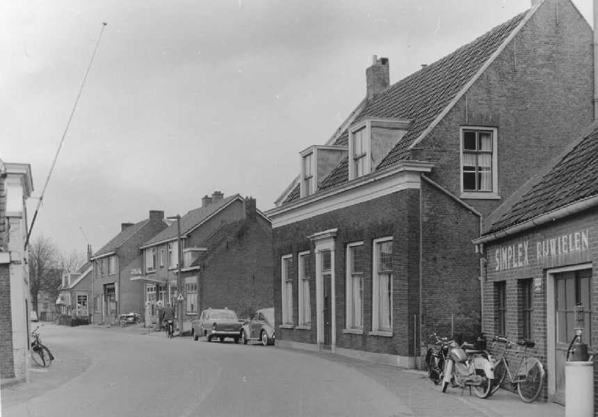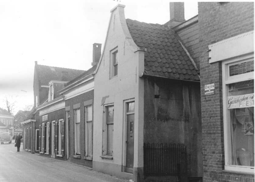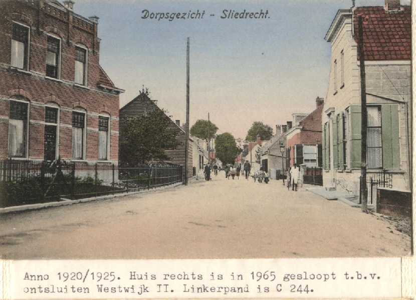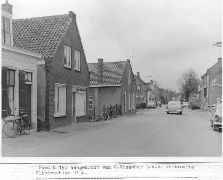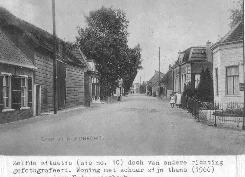 Beeld van Sliedrecht ter hoogte van wat nu Electrozaak Netten is, omgeving huidige Geulstraat.In het grote huis links was eerder enige tijd het naaiatelier van Willy Broere gevestigd.