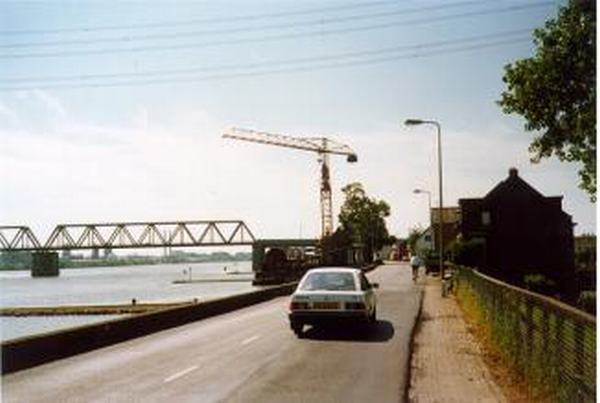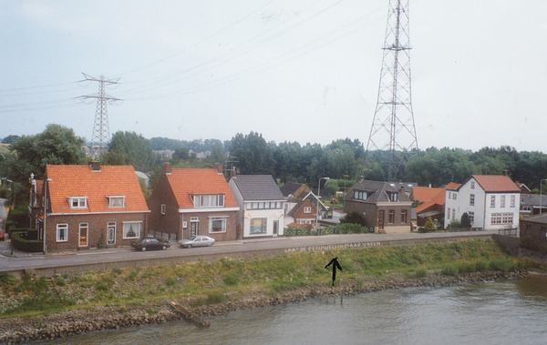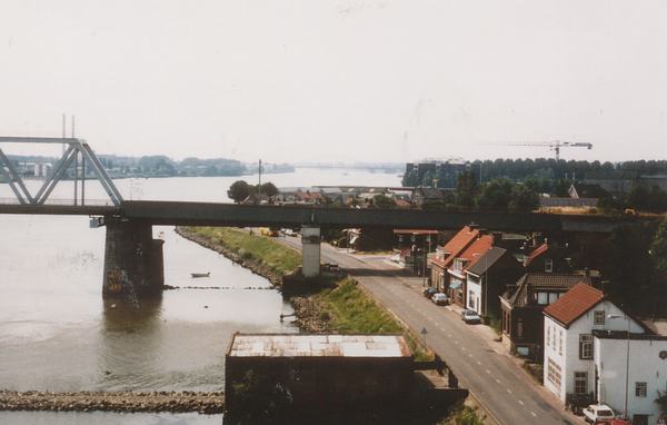 Zicht op Spoorbrug en Baanhoek langs de dijk