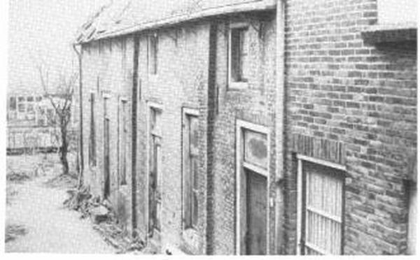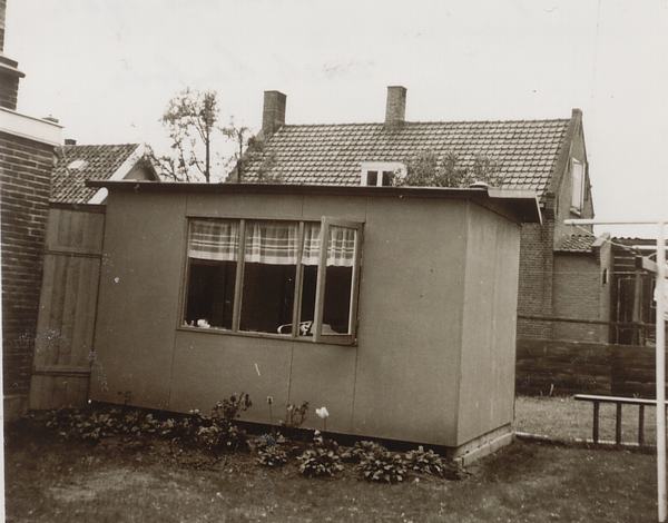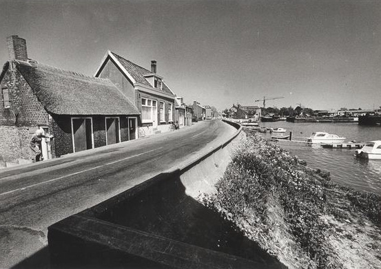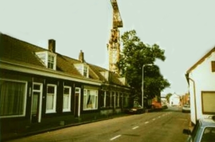 Dit is een foto uit Wijk D, links vooraan fietsenmaker v.d.Wiel, links achteraan groenteboer Annie Visser, rechts het witte huis is kruidenier P. Visser.