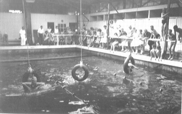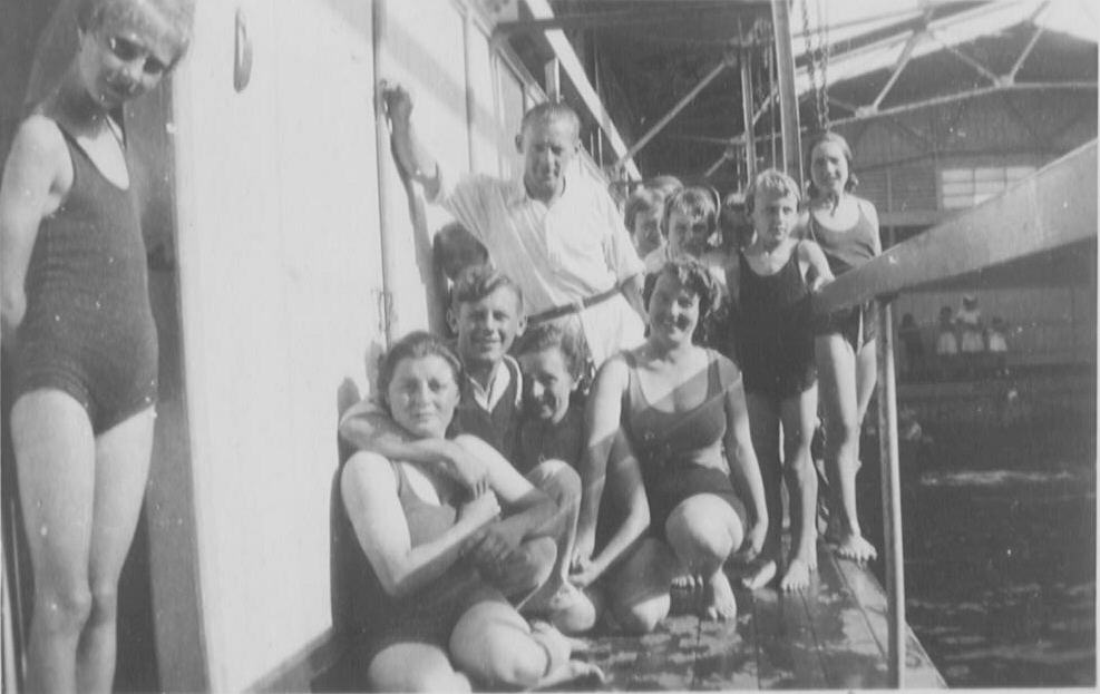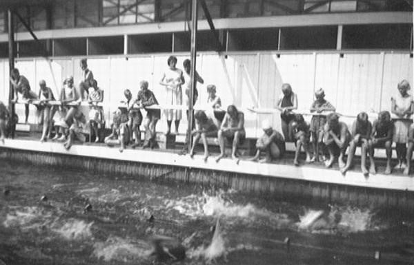 Zwemkampioenen Door Water Fit in het oude zwembad in de haven met badmeester Gerrit Hommerson