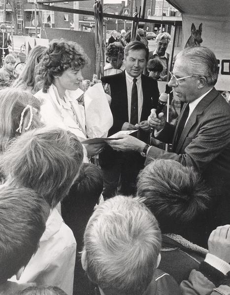 Burgemeester Kleywegt op de autobeurs op het Burgemeester Winklerplein