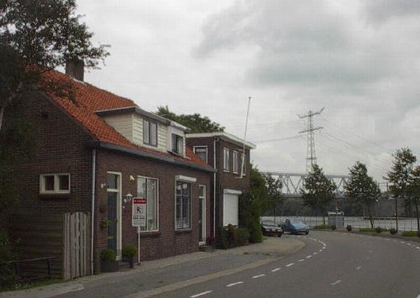 Dijkwoningen te Baanhoek-West nabij de spoorbrug