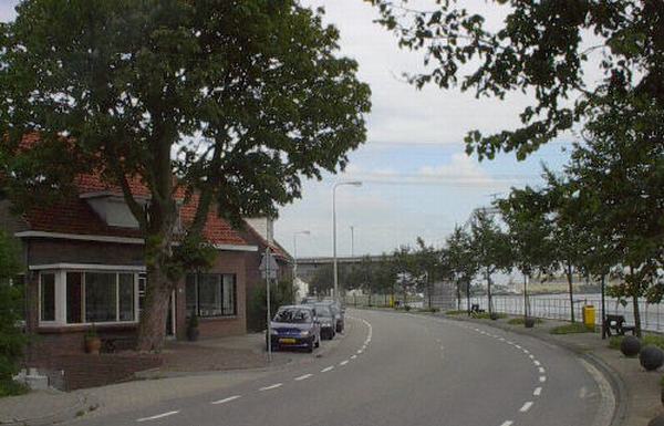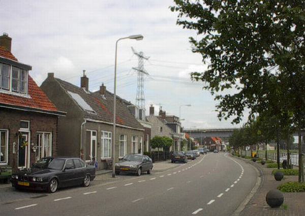 Dijkwoningen te Baanhoek-West, nabij de Spoorbrug