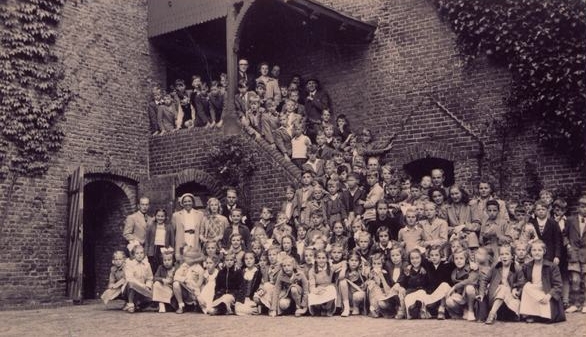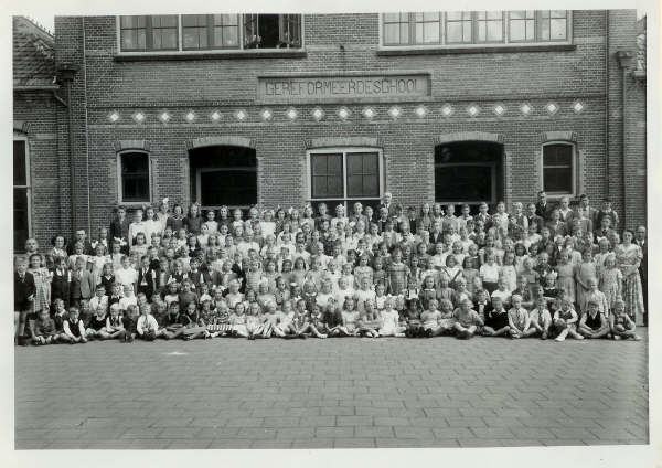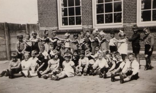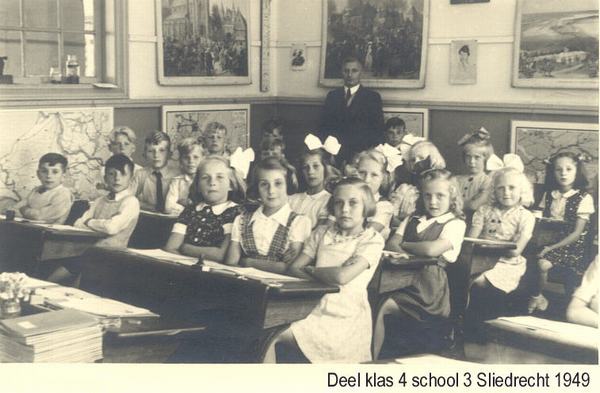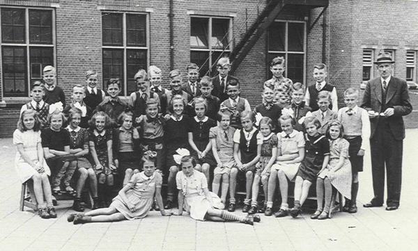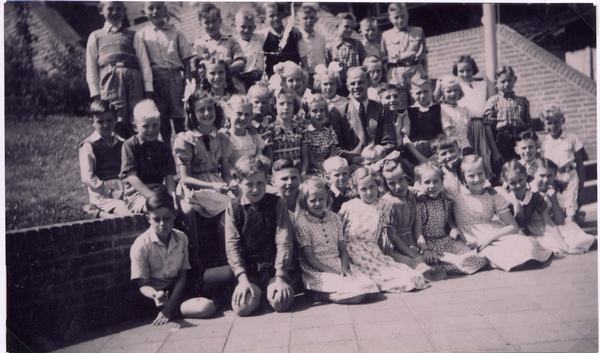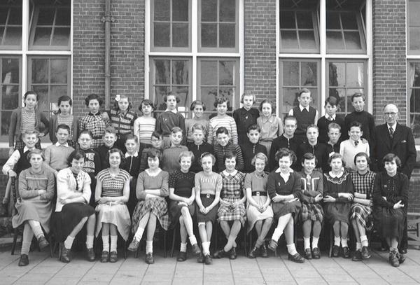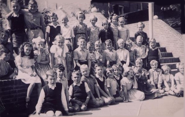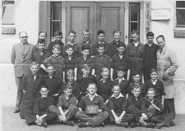 School 3 1953 met meneer Van Toledo, hoofd v.d. school. Middelste rij zesde van links Joop Vlot. Vierde van links, middelste rij is Hans Baardman.