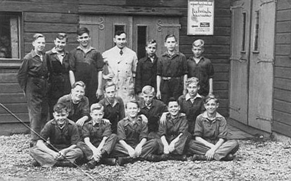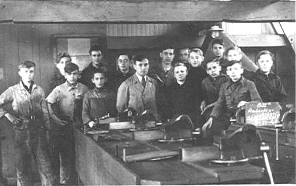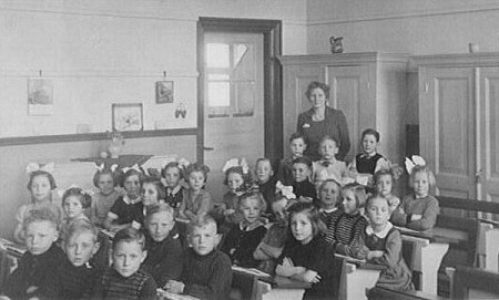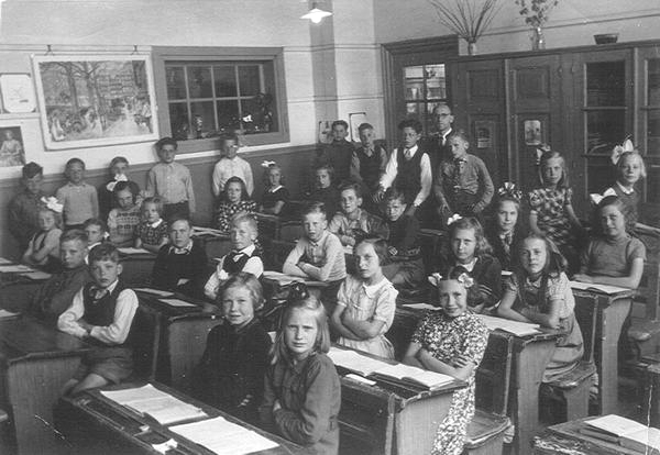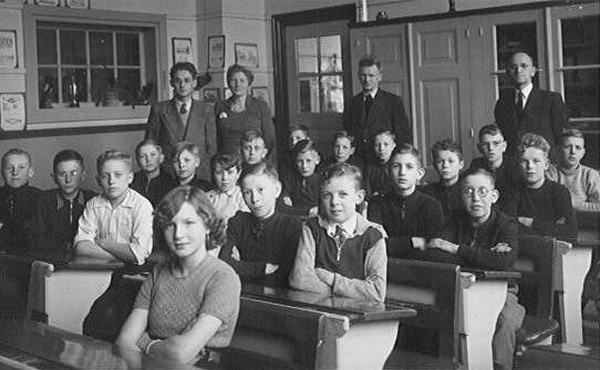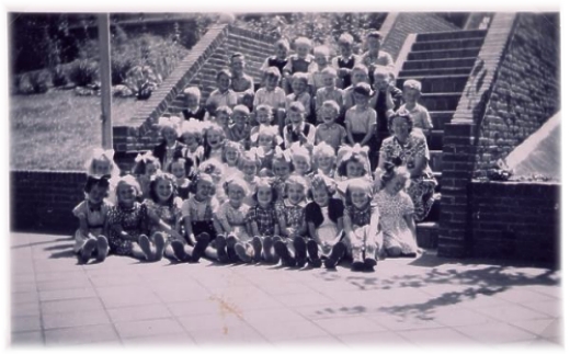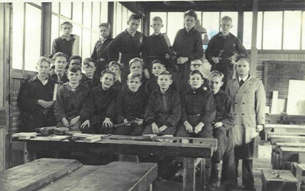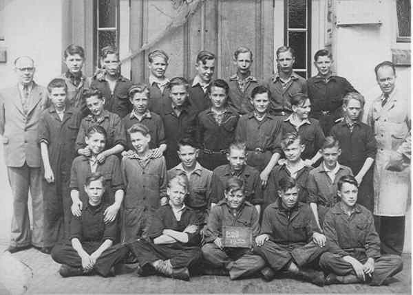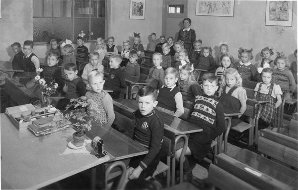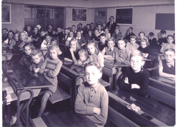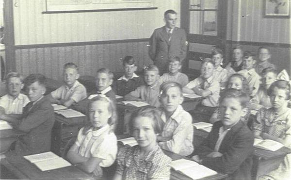 School 1 1952, met meester Vos, juffrouw Van Dorth, meester Vogel en meester Huisson.